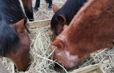 Im Gegensatz zu unserer größeren gemischten Herde bieten wir den Pferden hier „Heu ad libitum“.